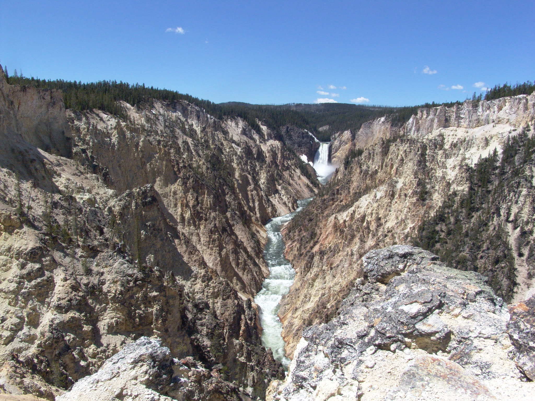 La più importante di queste meraviglie è la regione dello Yellowstone River, un surreale rettangolo di territorio avvolto nel vapore posizionato nell'angolo nordoccidentale dello stato. Il primo uomo bianco a mettervi piede fu John Colter, un privato che nel 1807 si era staccato dalla spedizione di Lewis e Clark. Da allora, i misteriosi gayser di Yellowstone, le sorgenti termali, le foreste pietrificate e le cascate eccitarono l'immaginazione di tutti coloro che ne sentirono parlare, che si lasciarono andare a racconti onirici di un paese avvolto nei fumi di zolfo dove si poteva pescare un pesce con le mani in un torrente e cuocerlo immediatamente dopo in una bollente sorgente termale.