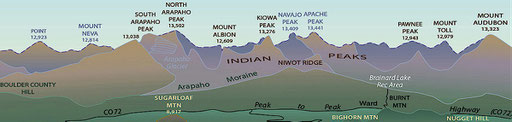 A Ovest del Front Range si estende parallelamente il Park Range, che ancora più a Ovest è affiancato dalle Sawatch Mountains, rese celebri dalle stazioni sciistiche di Aspen e Vail.